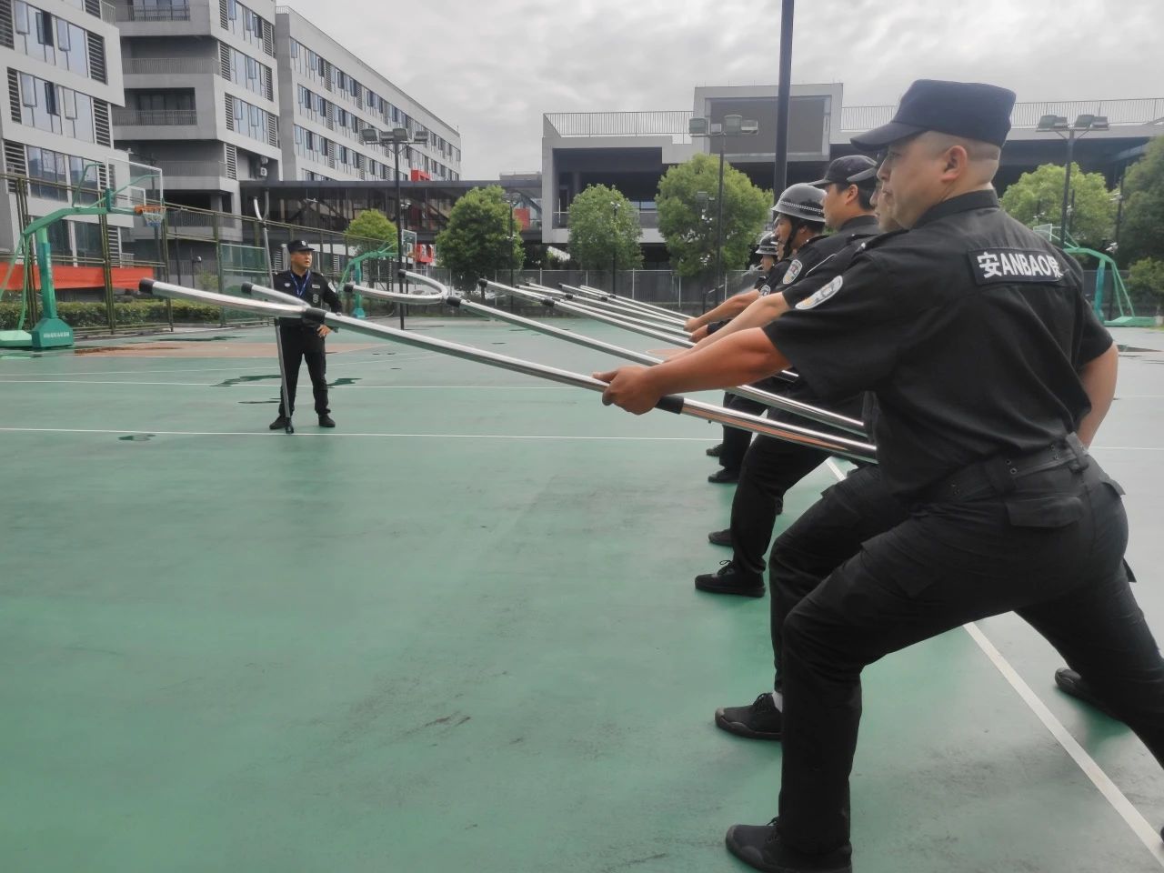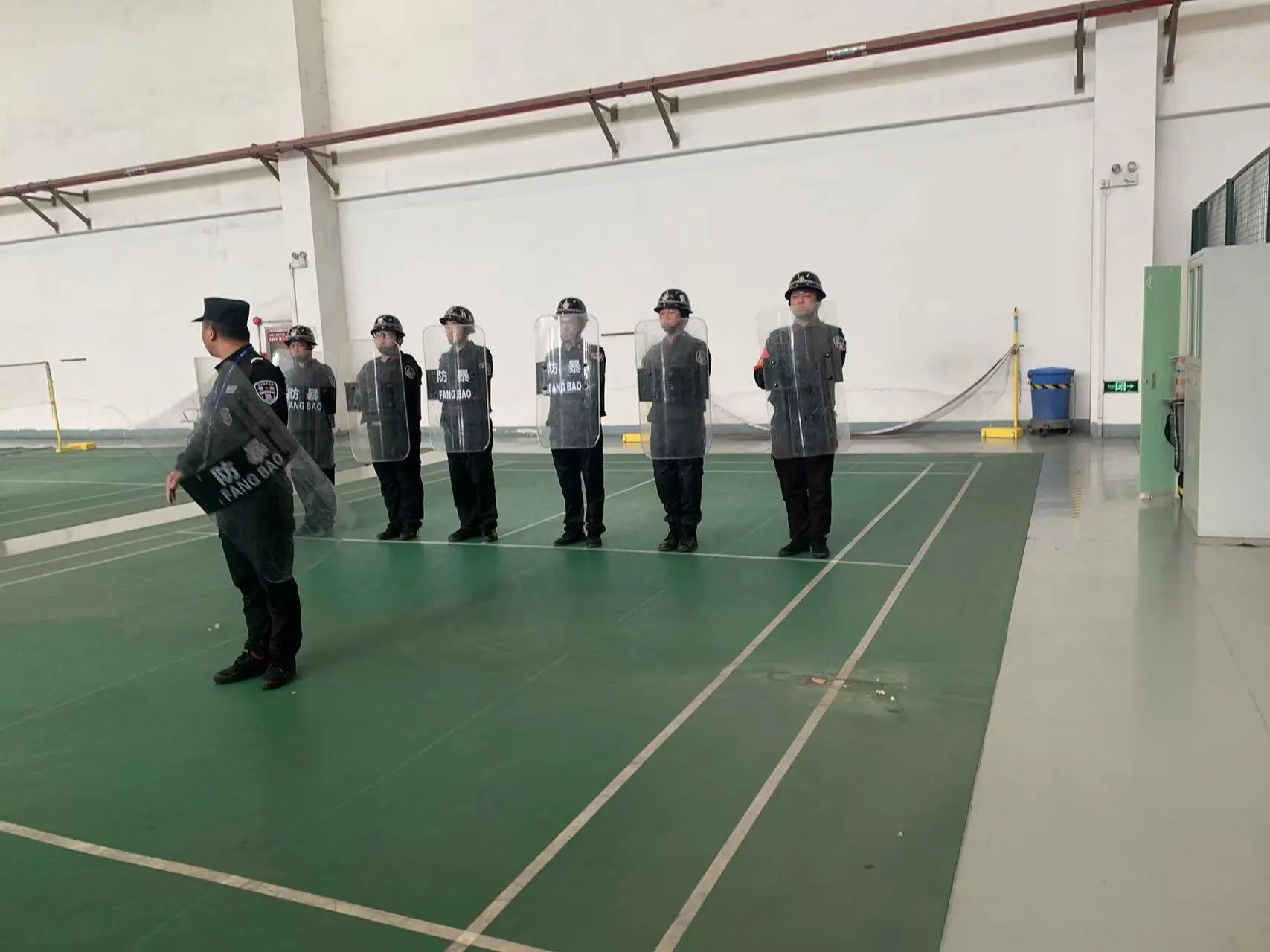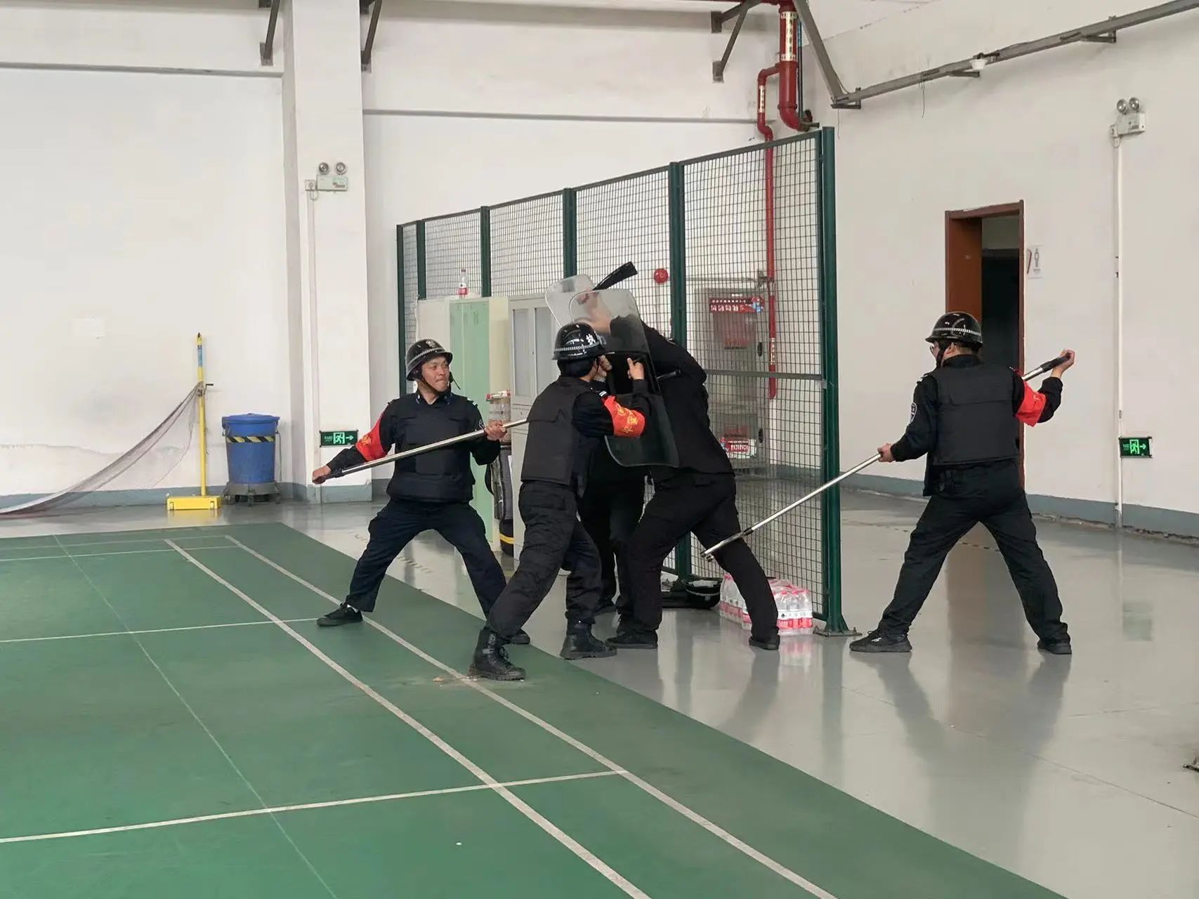 在蜀山基地、大华富阳生产基地,督教部组织开展了反恐防爆实操演练,讲解了钢叉、盾牌等防暴器械的功效及正确使用方法,五人一组开展实操演练。