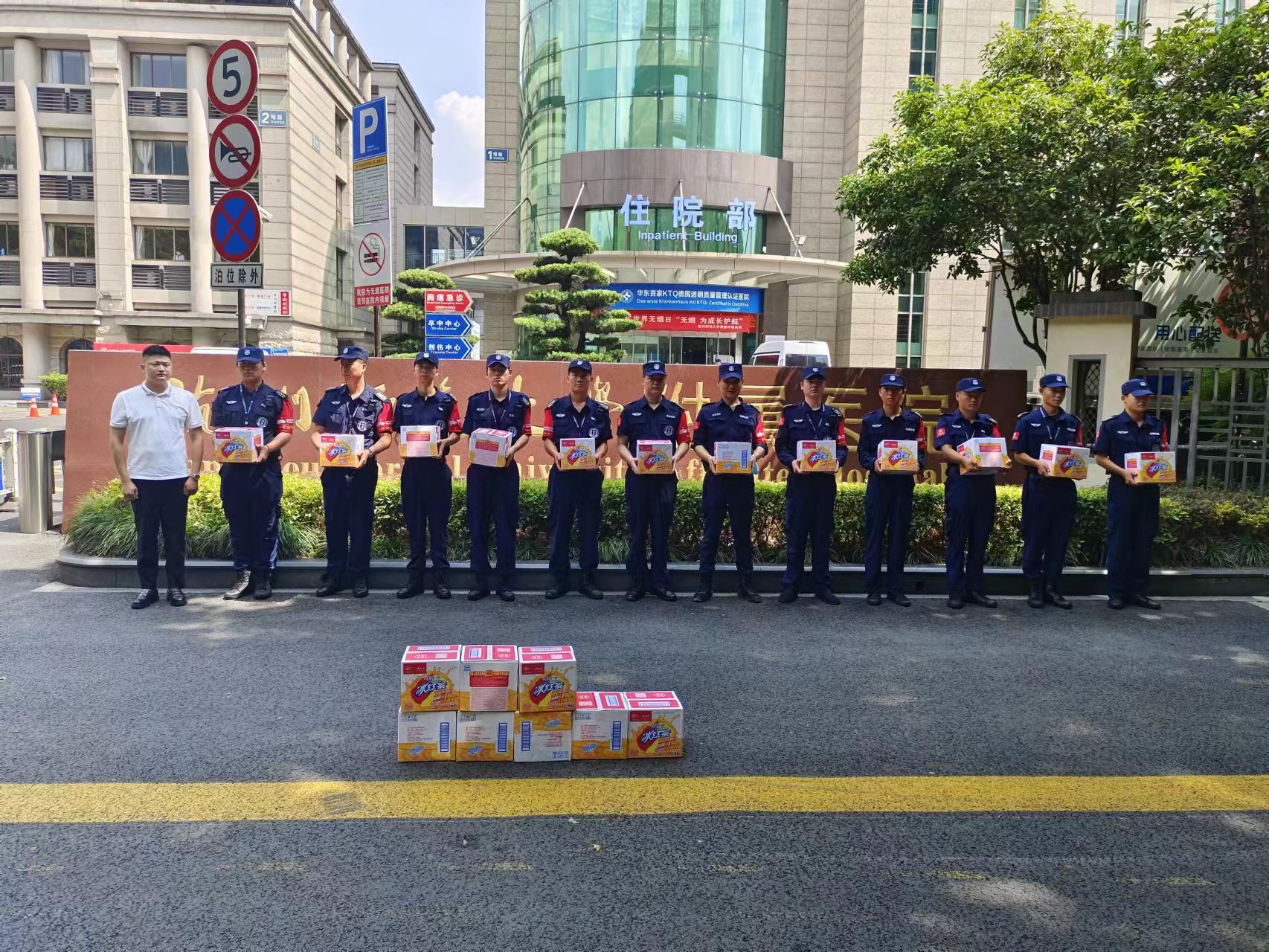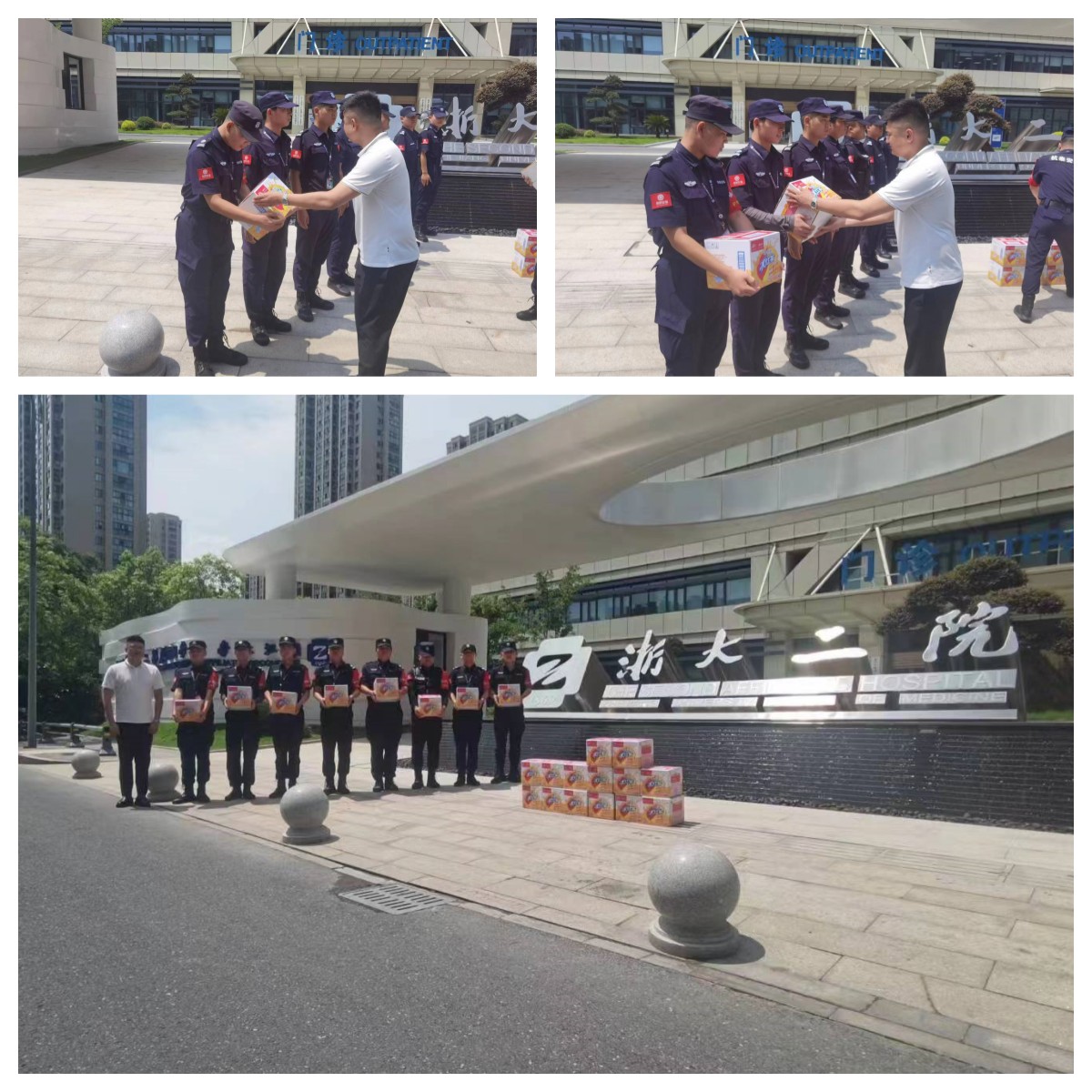 骄阳似火,浙江大地热浪滚滚,节节高升的温度时刻都牵动着公司领导的心。连日来,公司党支部书记、总经理高为为,团支部书记、保安二部经理周明辉以及直属大队两位大队长,他们一刻都没有停歇,向在教育系统、医疗系统、事业单位一线的队员们送去防暑降温药品、清凉饮品,将公司的关怀化作丝丝清凉,滋润了每个队员的心田。