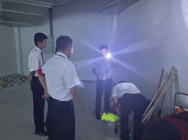 1、对地下车库排水口渗水、用电安全、岗点项目施工场所、各雨污管路、项目点低洼地等进行了隐患排查。