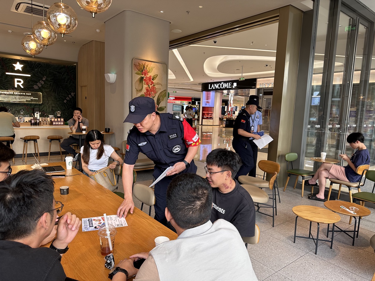 为进一步提高辖区群众的防诈骗意识和能力,切实维护好广大群众的切身利益。8月4日晚,杭州萧山城市安防保安服务有限公司配合新塘派出所在银泰百货萧山店开展反诈骗主题宣教活动。