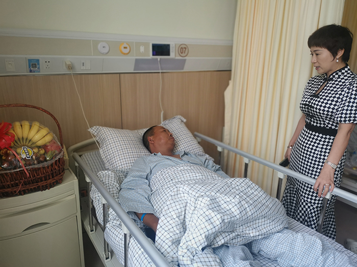 在队员的病床前,万总放下水果篮,亲切地询问队员的伤情,第一时间告知队员,公司有额外给员工购买意外险,公司在了解到员工突发这一状况,已经第一时间联系了保险公司理赔员,相关赔付,后期公司相关部门同事都会一起协助办理的。万总宽慰队员只管安心养伤,争取早日康复,鸿民保安集团大家庭所有同仁都盼望着早日迎接您的健康归来。