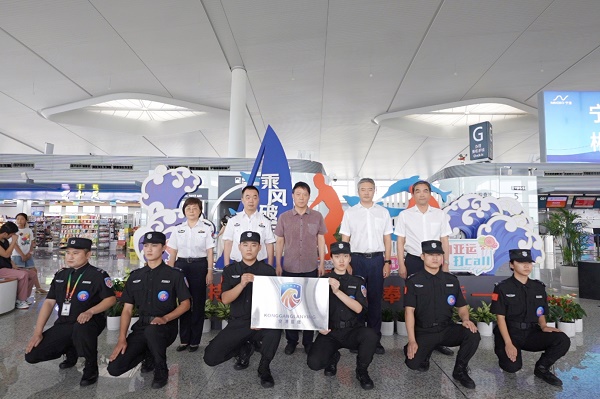 8月23日,在杭州第19届亚运会倒计时30天之际,保安公司在宁波机场举办防爆检测岗位“空港蓝鹰”品牌授牌仪式,这标志着由浙江机场集团保安服务有限公司与宁波机场安检护卫部合力打造的“空港蓝鹰”安全服务队伍正式吹响亚运安保“冲锋”号,全面提升安全品质、全力护航亚运盛会。