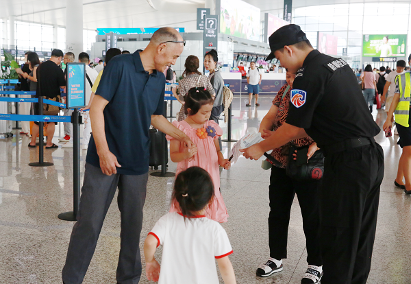 授牌仪式后,“空港蓝鹰”随即开展“蓝鹰出战迎亚运 真情服务送清凉”主题服务活动。