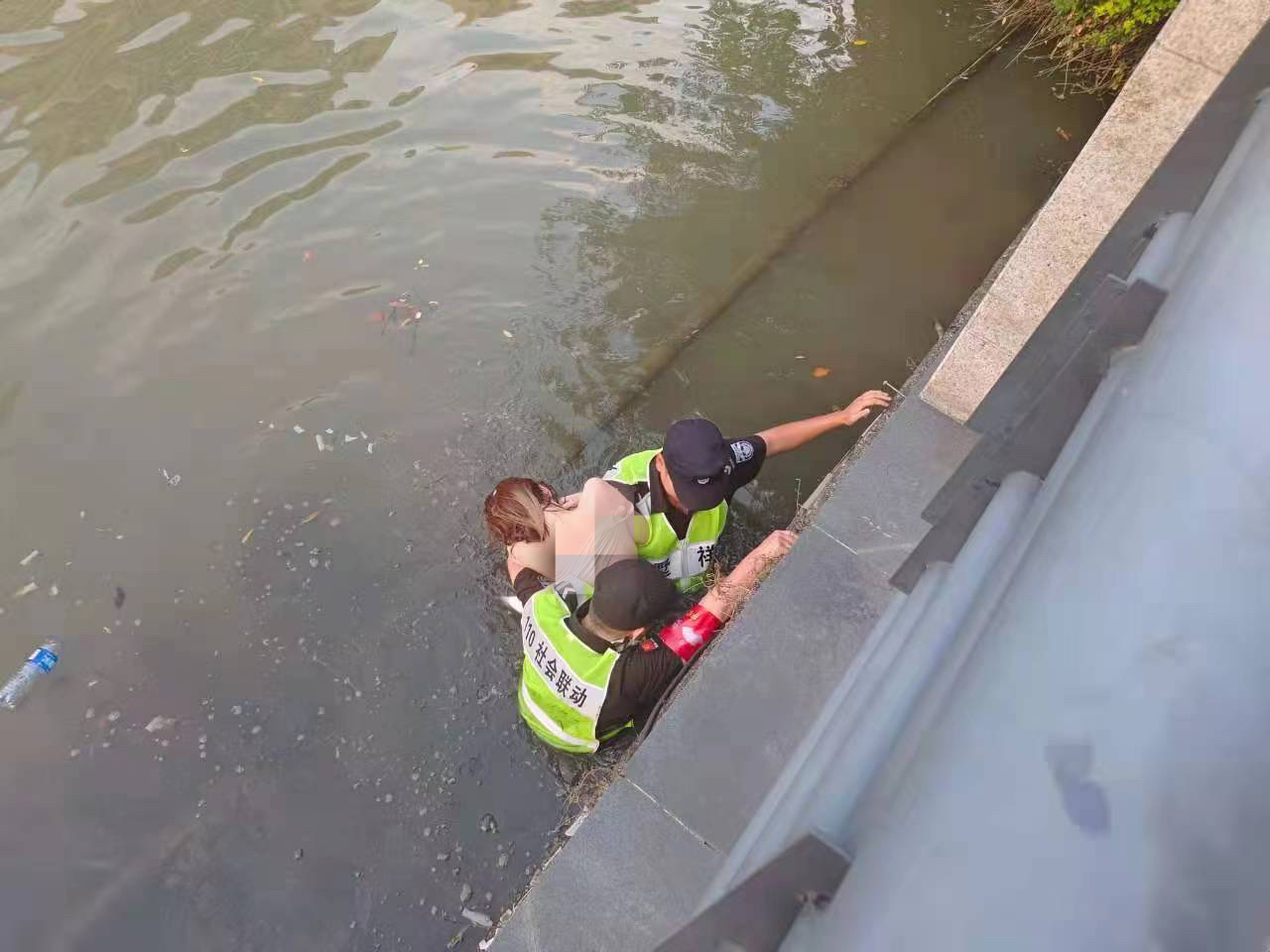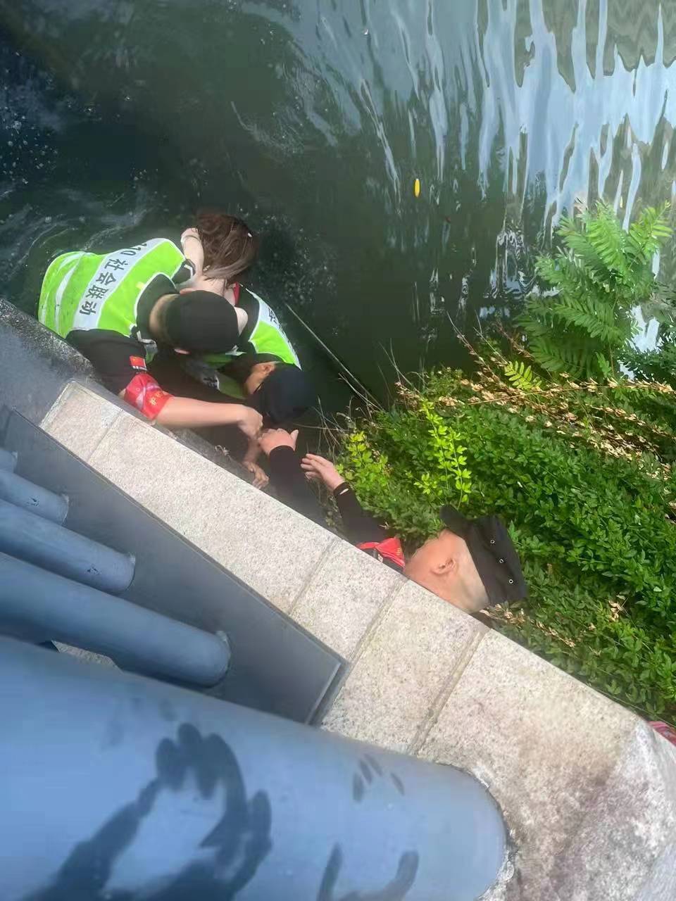 “富强桥附近有人落水”……8月19日凌晨6点天刚微微亮,公司队员庄敏晨就接到一条救人指令。接收完指令后,他火速赶往现场,第一时间来到落水点。到达现场后,庄敏晨发现两名落水者漂浮在水中,随时都有下沉的可能,加上当时正值清晨气温较低,两人衣着单薄泡在水中存在失温风险。面对刻不容缓的现场情况,庄敏晨和同行队员迅速展开施救。经过现场勘察,他们想要利用周边救生工具将两人救起,但多次尝试后均失败,救援行动陷入僵局。