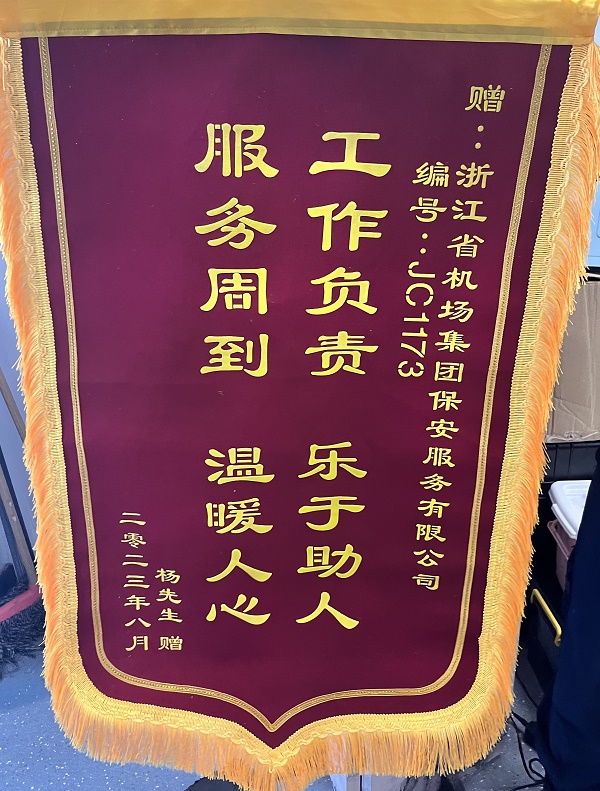 8月以来,保安公司连续收到来自旅客的电话表扬信息,经了解分别是9日航站楼防爆检测队员吴德琴引领并协助晚到旅客办理值机、指引其走安检绿色通道获得旅客电话表扬,12日防爆检测队员李红磊引领一位外国旅客乘坐摆渡车前往T4航站楼过安检获得旅客赠送感谢锦旗一面,13日T4国内到达队员叶益楷、航站区副大队长方潘积极协助旅客找回遗失在卫生间的手机获得旅客电话表扬,14日防爆队长陶梦磊引领并协助独自乘机老年旅客乘坐网约车获得旅客电话表扬,16日T4国内到达队员黄祖奎发现并妥善保管旅客丢失手机获得旅客电话表扬,18日防爆队长梁志远引领并协助带着孩子乘机的女性旅客乘坐网约车获得旅客电话表扬,18日返流岗队员吴超刚、徐曜帮助走失老人与家人团聚获得其家人的致电表扬,19日防爆队员王惠壮发现并妥善保管旅客丢失黑色挂包获得旅客电话表扬,21日三超拦截队员张家乐帮助晚到旅客保管有纪念意义的打火机并引领旅客从安检绿色通道进入获得旅客电话表扬。