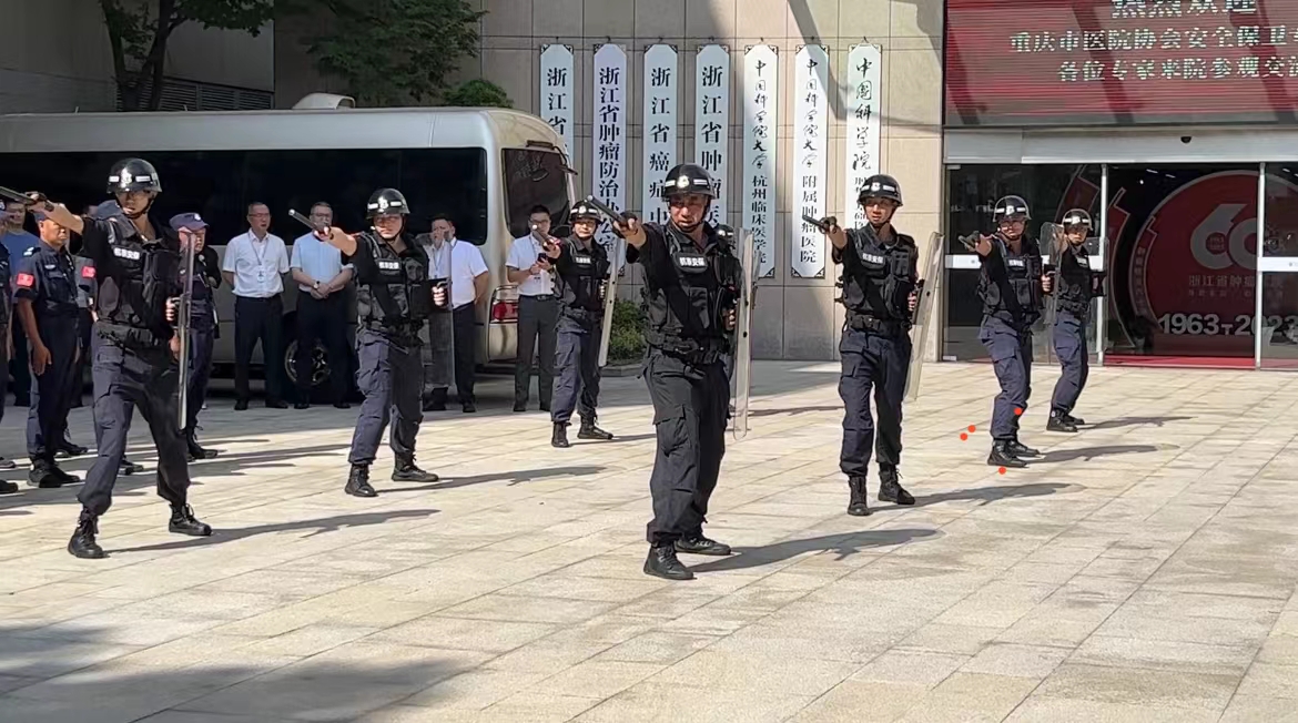 2023年8月27日上午,重庆市医院协会安全保卫专业委员会主任委员谭明树,重庆市第十三人民医院纪委书记黄承琴,重庆市医科大学附属儿童医院治安管理科科长王峥等一行7人,来到浙江省肿瘤医院,就医院安全保卫及消防管理等工作进行参观交流。杭泰安保驻点中队接保卫部命令,精心蓄力,全力以“护”!