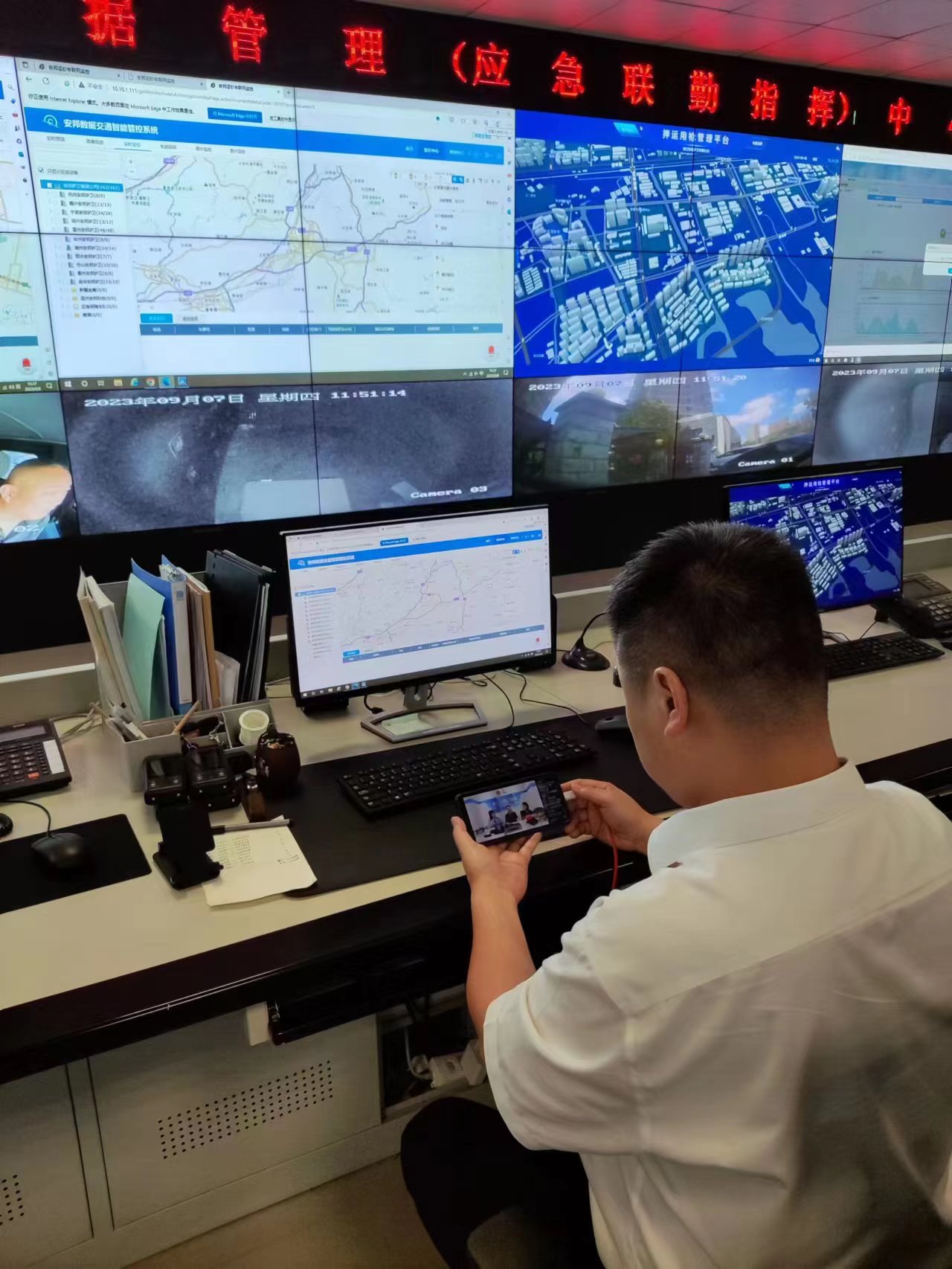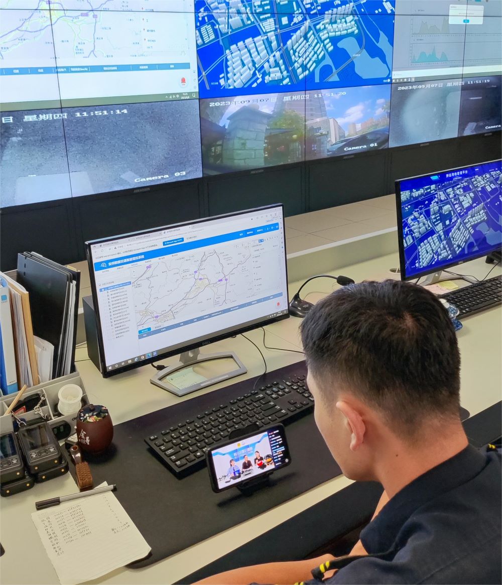 监控指挥中心成员现场观看直播