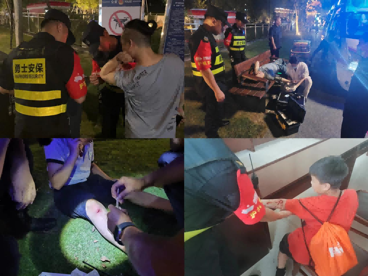 截止到9月21日,公园共发生三起市民意外摔倒受伤事件。勇士安保队员都第一时间发现并用药品给其伤口进行清毒包扎处理。突发事件及时、准确、高效的处理,得益于勇士安保定期开展日常突发事件应急救援处置演练培训,以及队员们在每一次演练和培训中的认真对待。