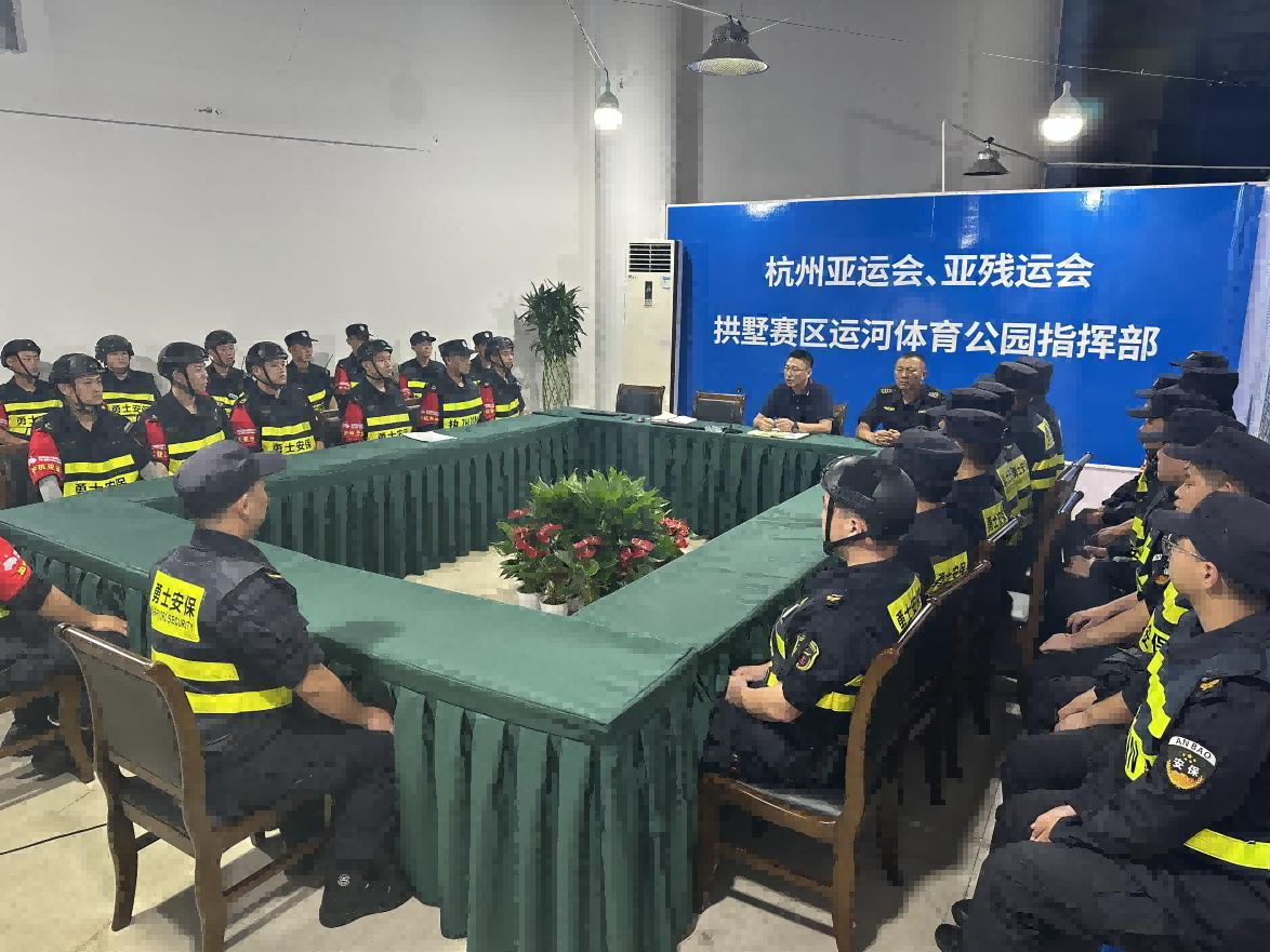 2023年9月15日,浙江勇士安保服务有限公司派驻安保人员助力拱墅区运河体育公园亚(残)运会赛事期间保障工作指挥部安全保障工作。提前一周,勇士安保总经理都总组织人员对工作责任区域进行现场勘察,制定专属安保方案、突发应急处置方案及相关工作要求。