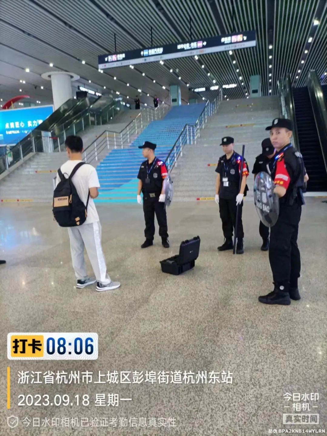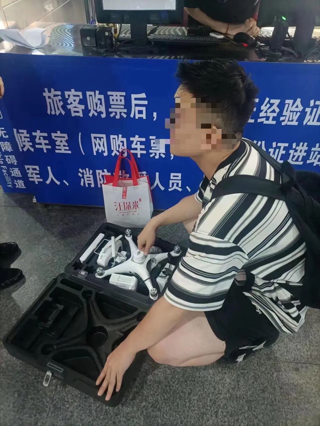 9月18日,火车东站东广场大厅,巡逻队员发现有乘客携带无人机,及时拦截上报.