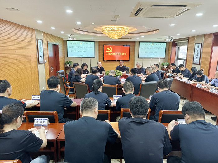 集团党支部在会上布置本次主题教育的学习方案及计划。集团全体党员及管理人员参加会议。