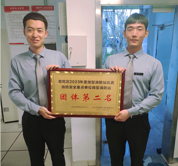 在比赛结束后的颁奖典礼上,浙江宇创保安有限公司舟山项目以出色的表现获得了多个奖项。其中,团队整体表现突出,荣获“团体第二名”。队员张鑫在紧急救援环节中的出色表现获得了“消防安全重点单位微型消防站个人总分第一名”;队员尚文龙获得了“消防安全重点单位微型消防站个人总分第二名”。这些奖项的获得不仅是对浙江宇创保安有限公司团队的认可,也是对其长期以来在消防安全领域的不懈努力的肯定。
