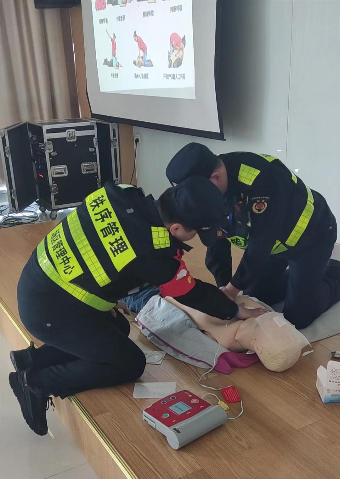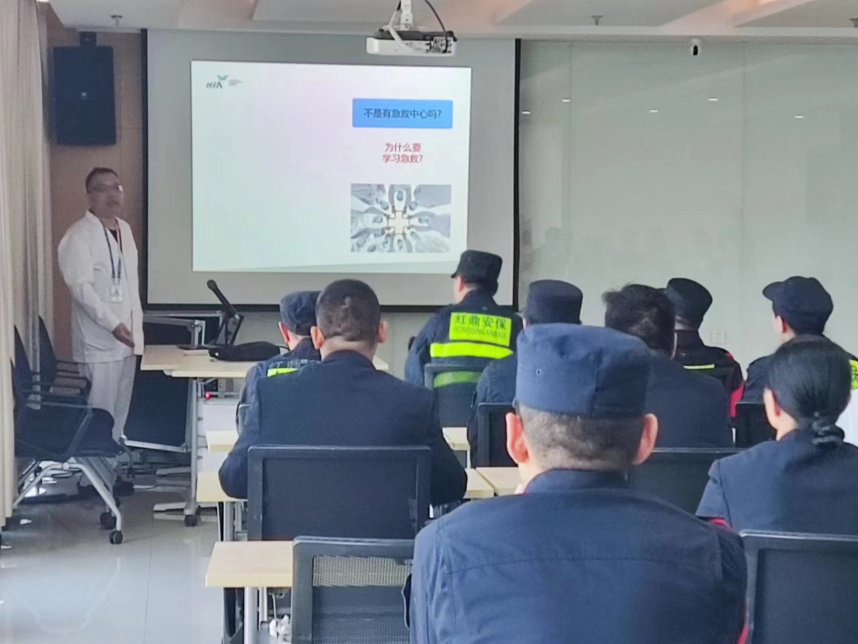 为了进一步普及急救知识,提升应对突发事件与意外伤害事故中安保人员的应急救护和自救互救能力,10月24日,红鼎保安驻杭州萧山国际机场项目部组织安保人员参加了由机场场区管理中心组织的急救技能知识、AED使用等的知识讲座并进行了实操。