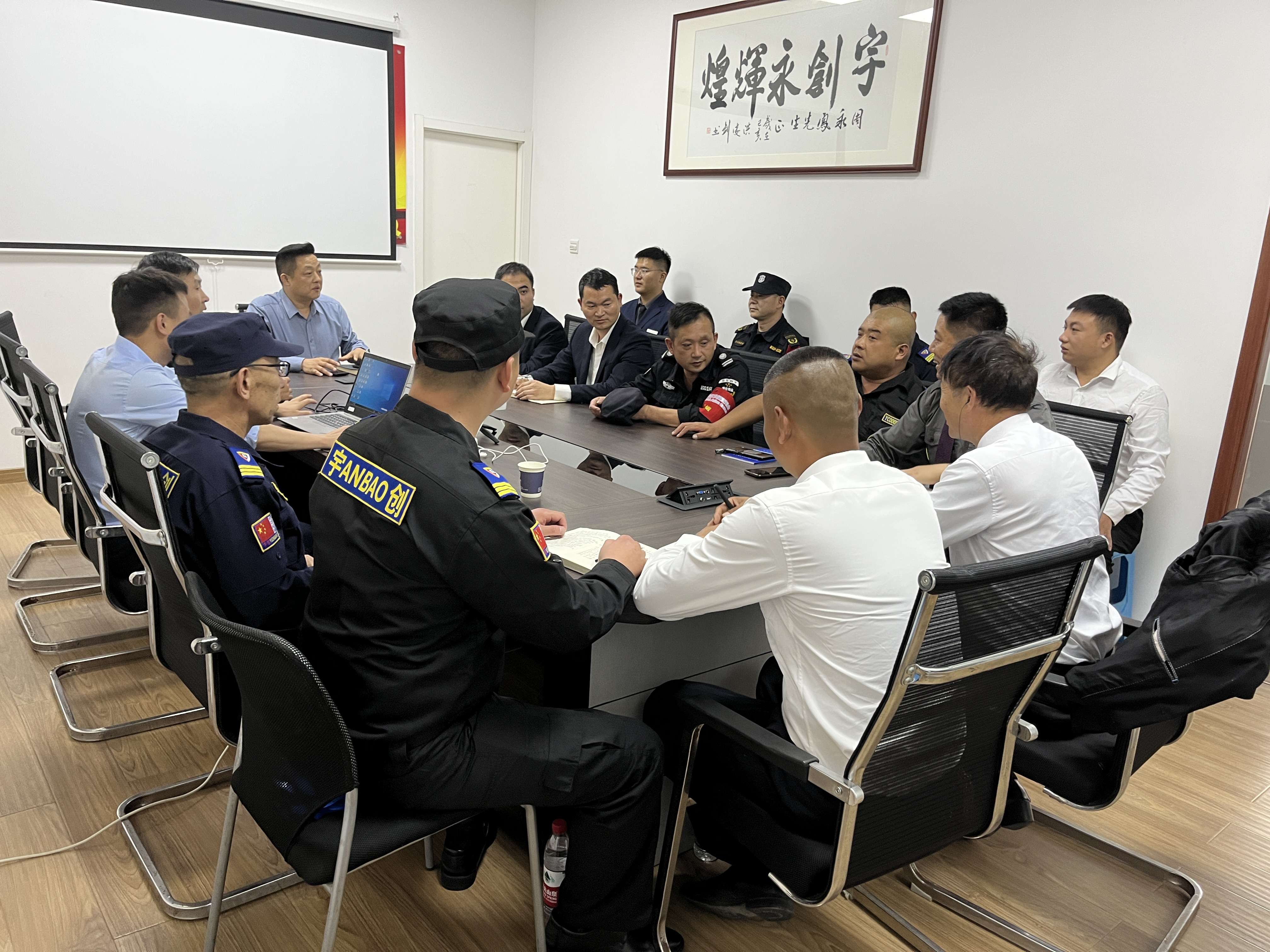 董事长周永凤先生在会议上传达了杭州市公安局保安管理支队相关工作要求,并要求各骨干成员向保安队员传达会议内容;强调了在杭州市亚残运会期间,保安队伍一定要抓好形象、塑好品牌;对保安队伍组织架构及人才引用进行了部署,同时周总对公司未来规划和近期主要工作进行了总结。
