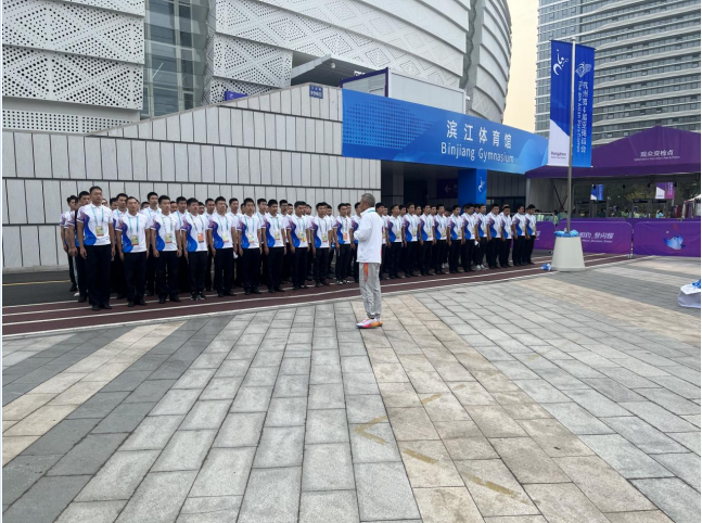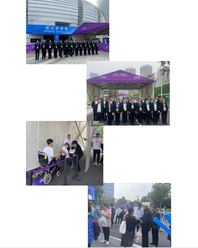 从2023年10月8日进入亚残会转换期开始后,杭州银剑保安服务有限公司的安保安检队伍就已提前入驻亚残会会场—滨江体育馆,强化安保教育,使全体安保队员明确此次亚残安保的意义所在,树立坚定的“大局意识、责任意识”,切实做到“亚残安全、人人有责”,确保安保任务执行的专业化、人性化和规范化。织紧织密亚残安保防线,为亚残会滨江体育馆羽毛球赛事顺利开展保驾护航。