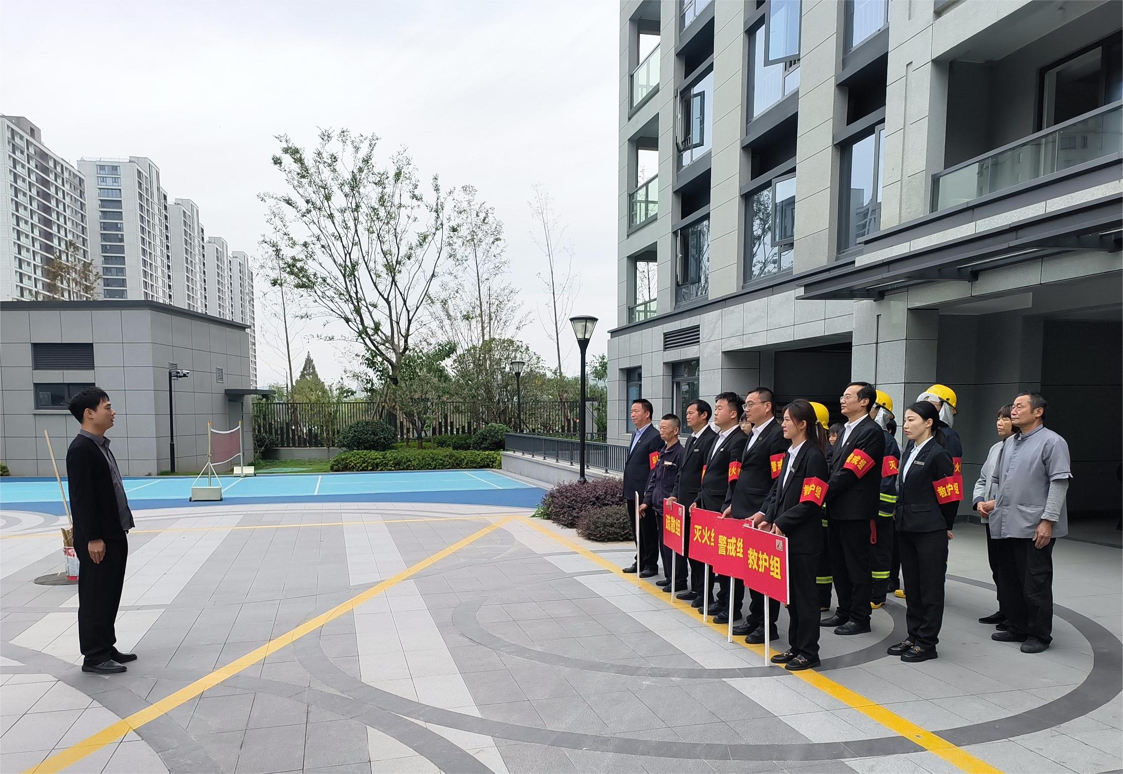 在开展消防学习培训的基础上,以练为战,训战结合,公司不同项目开展包括火灾报警、疏散逃生演练、紧急救援在内的消防演习,进一步完善应急预案,检验应急预案的有效性与实用性,提高队员突发事件应急水平与处置能力。