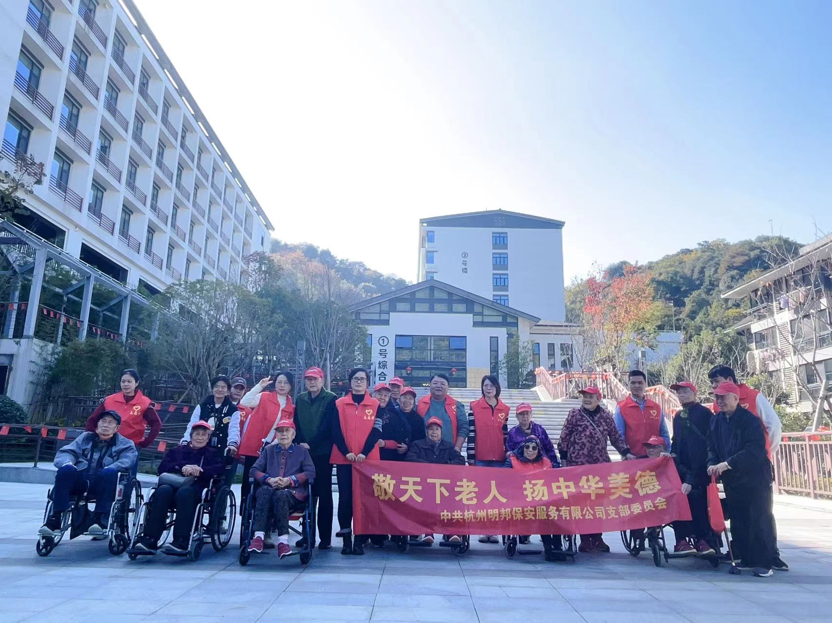 上午12点,明邦保安公司车队齐刷刷地停靠在了小和山中天绿城大爱天下医养中心敬老院。