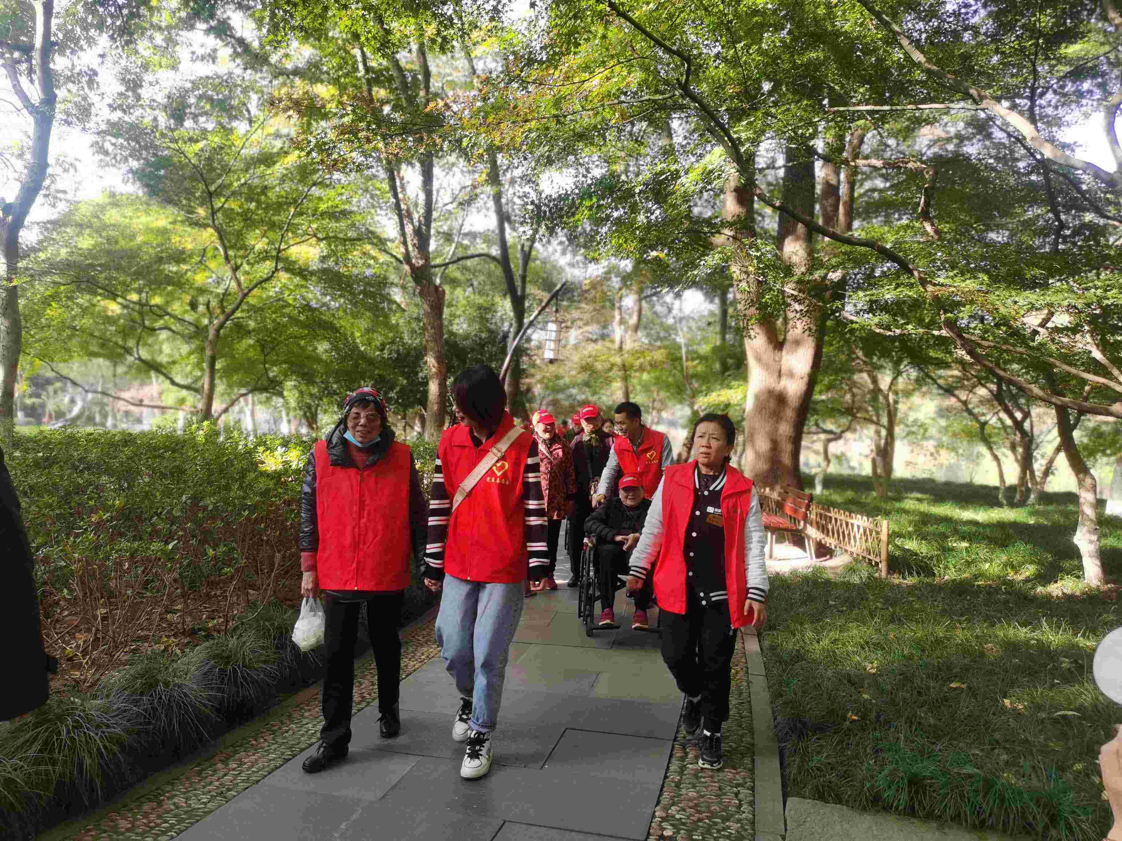下午1点,阳光最暖的时间,载上敬老院的老人们浩浩荡荡开往西湖曲院风荷。到了景点大家有的推着老人,有的拉着老人,像是陪伴孩子一样,让他们得到前所未有的满足于充实,享受严冬里这一个角落的温暖和惬意!