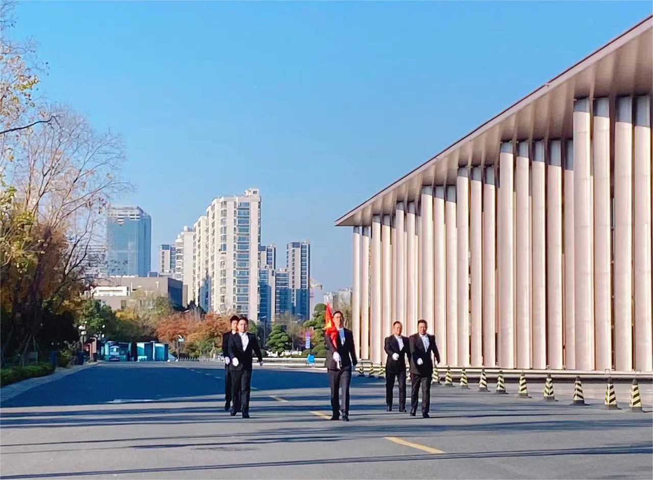 随着歌声渐止,安保团队总指挥宣布升旗仪式结束,发出“队伍带回”口令,护旗队有序退场,升旗仪式顺利完成。