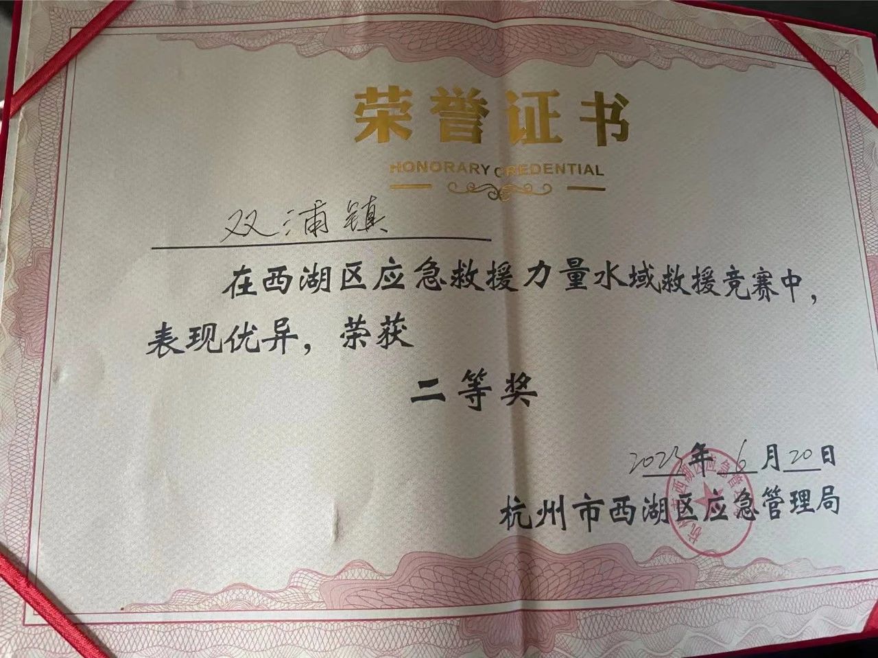 在西湖区应急救援力量水域救援竞赛中获得第二名。