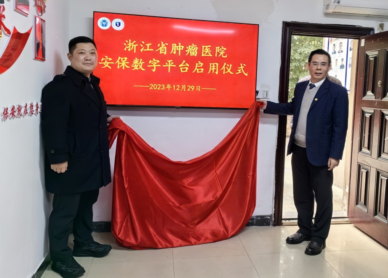 浙江杭泰安保服务有限公司历时22个月用心打造的安保数字平台于2023年12月29日在公司高总、邵总与浙江省肿瘤医院党委委员、副院长邵国良及医院保卫部的见证下在浙江省肿瘤医院项目部正式上线运行。