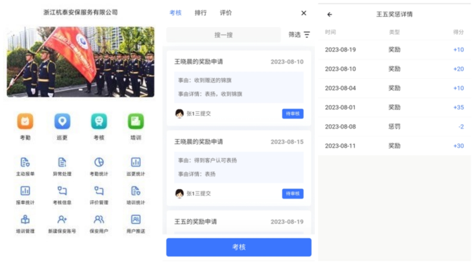 该模块实现了项目部安保人员各维度的考核指标细化,为奖惩提供了日常分类管理、人员积分审核、年度积分汇总、积分排行等功能。将考核与日常工作结合,填补了以往考核数据难收集、指标难量化等问题,全面提升了考核的精准性和公平性,能最大程度地激发员工工作积极性。