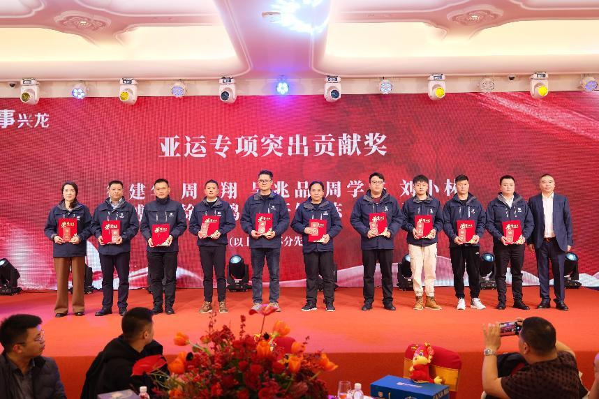 为进一步鼓励先进、鼓舞士气、激励全体员工追超敢赢、拼搏进取,大会隆重颁发了“亚运专项突出贡献奖”、“亚运专项个人先进奖”、“年度优秀管理人员”、“年度优秀员工”奖项,六十余名优秀管理员与个人在全场热烈的掌声中接受了表彰与嘉奖。