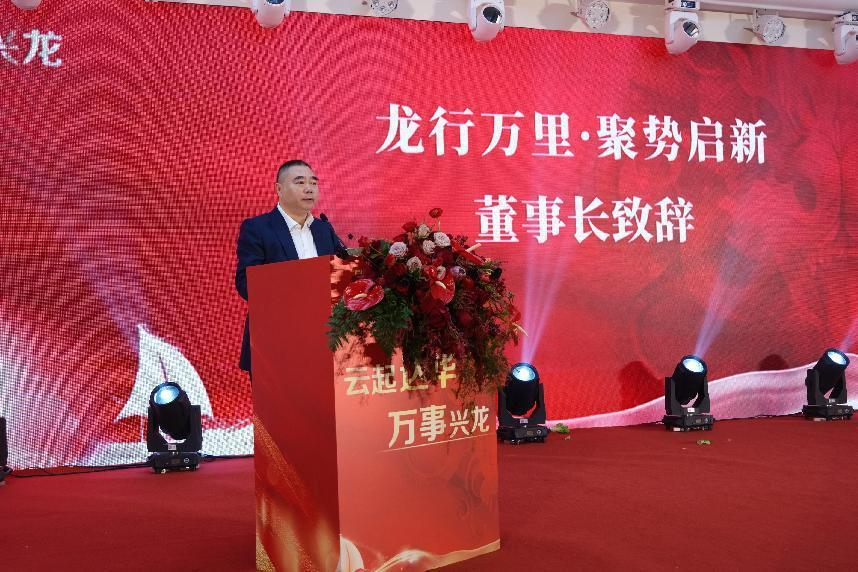 在象征着热闹喜庆、鼎盛兴旺的舞狮采青表演之后,达华智慧安保集团蒋寅董事长做“龙行万里.聚势启新”主题致辞。