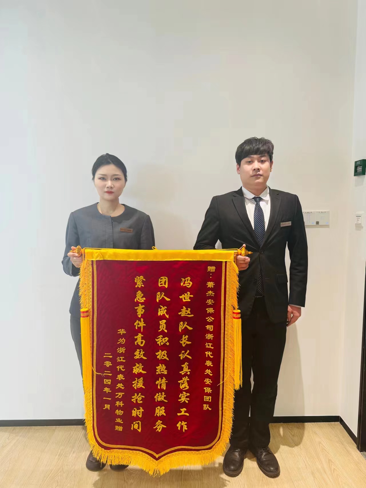 项目安保团队面对突发情况果断处理,熟记运用岗位操作流程,临危不乱,有效帮助患者,展现团队的专业、效率与热情,物业方特赠予锦旗表扬。
