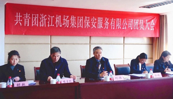 1月23日,共青团浙江机场集团保安服务有限公司团员大会胜利召开。集团团委书记、党群工作部副部长汪婷到会指导,保安公司全体领导班子成员出席会议。