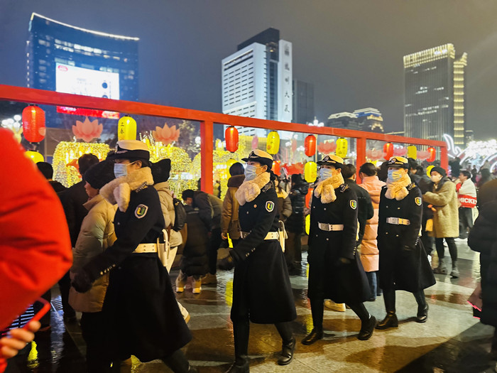 正月十五闹元宵,花灯盏盏庆团圆。2月23—25日,武林广场连续3天开展元宵节活动,赏花灯、猜灯谜、敲锣鼓……节目丰富,烟火气十足,吸引大量市民前来参与。为确保活动安全有序进行,集团累计派驻240余人次值守现场,守护市民欢度佳节。