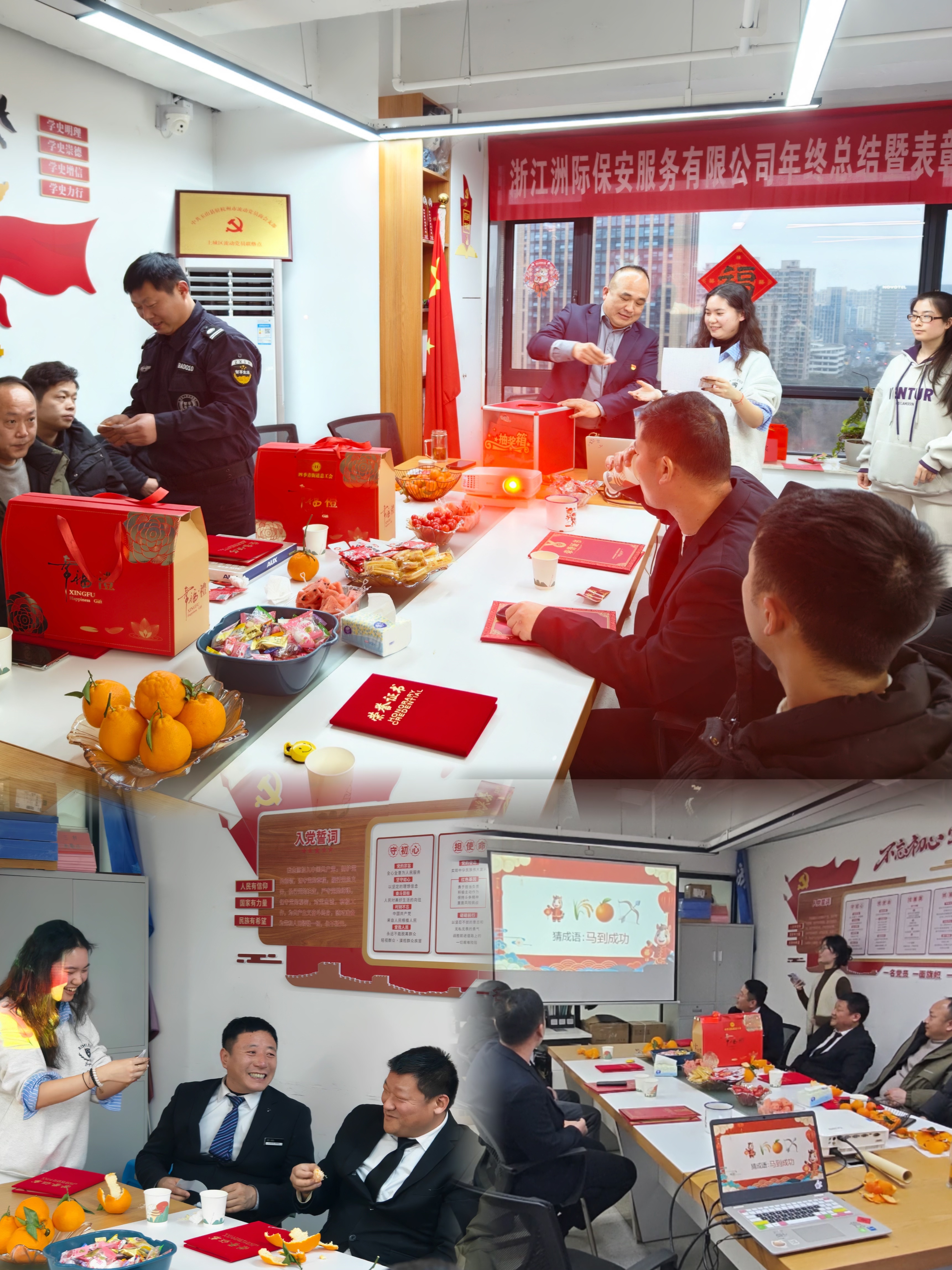 随后,董事长发表致辞,向全体员工致以最诚挚的问候与感谢。话语间,既有对过去一年全体同仁凝心聚力、默默坚守的肯定,也有对未来发展的殷切期许与坚定信心,鼓励大家不忘初心、勇担使命,继续以昂扬的姿态守护平安,共筑公司发展新辉煌。