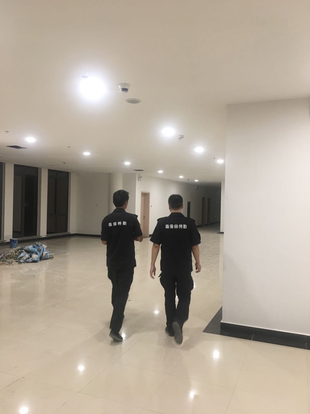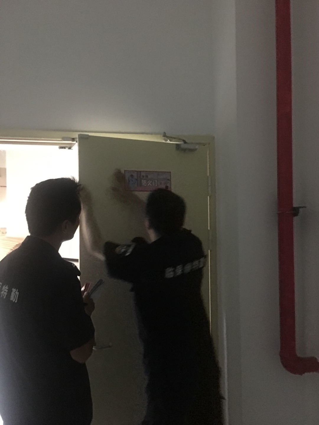 布置会议结束后,由杭州临安保安服务有限公司物业部经理罗芳芳带领下,一支由23人组成的特保后勤小队整装出发。本次任务的目标是校园内各楼宇内的所有消防设施设备完成消防标志的张贴。校园内共计24幢楼宇,基本楼层都在6层以上,面对如此巨大的工作量,临保物业的特保队员们没有丝毫退缩,各个小组在班组长的带领下,分工合作,以地毯式的复查法,确保每个设施都正确的贴有标志。没有时间外出吃饭,我们就把外卖带到现场解决;白天时间不够,我们就主动加班。其中不乏有一些女特保队员,她们不畏艰难,汗水布满额头,无不彰显出巾帼不让须眉的铁军气概。在所有特保队员连续挑灯夜战2个晚上,于验收前一天凌晨1点全部完成任务。
