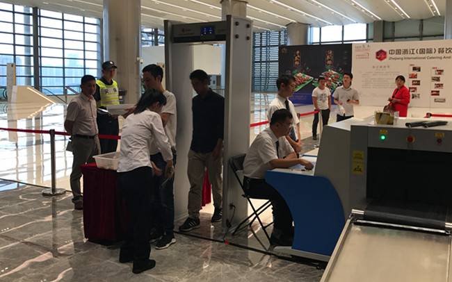 全体安保人员做到服从命令,听从指挥,提前上岗,文明执勤,热情服务。为期三天的展会,共查检入场人员11217人次,查检包物5008件,查收禁限带物品800余件。在全体安保人员的共同努力下,公司圆满完成中国浙江(国际)餐饮美食博览会暨第八届浙江厨师节的安保任务。