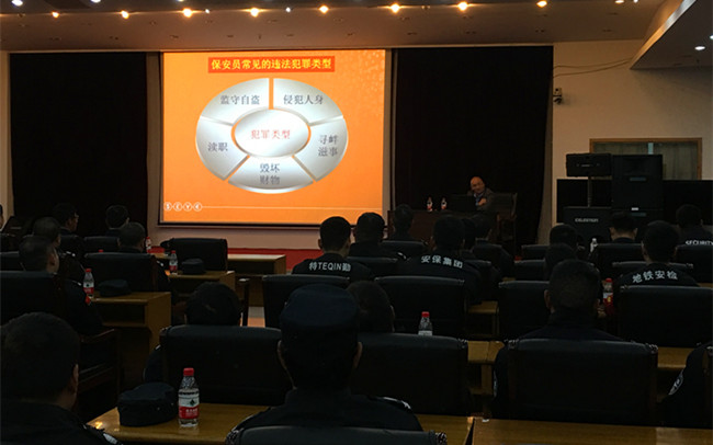 培训会上,陈教授首先为大家解读了保安服务行业所涉的主要法律、法规。如《宪法》、《治安管理处罚法》、《保安服务管理条例》,使大家明确在从事安保服务时的授权性、义务性规范和禁止性规范。