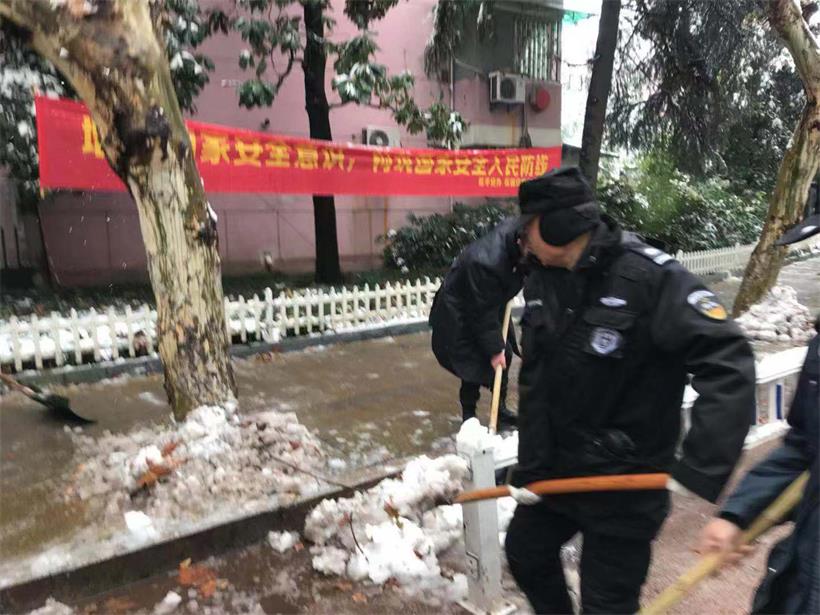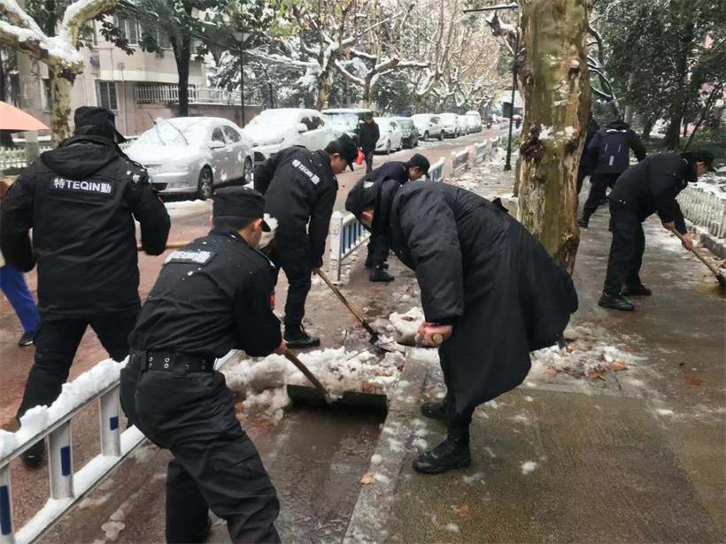 “这个周末不轻松。”2018年12月8—9日周末,杭城下着难得一见的雪,路上满是积雪,影响市民的出行和交通。浙江问鼎保安公司向所属各网点发出通知,要求保安们拿起工具走上岗点附近的街巷马路,清除积雪,以方便社会行人和车辆出行。