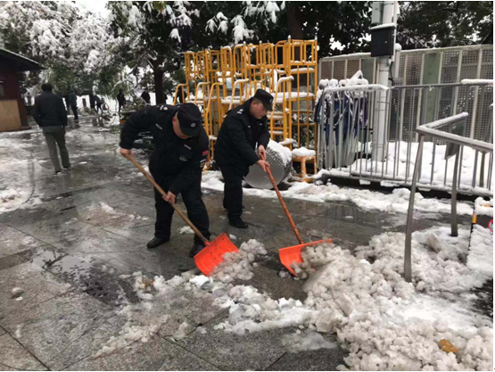 江南一夜大雪,杭城一片洁白。西湖美似仙境,行人络绎不绝。今年杭城的大雪来的比往年更早。断桥,苏堤,西湖的每一处美景都让游客以及摄影爱好者趋之若鹜。此时的你也许正在与家人分享着热腾腾的火锅,正与朋友为这场大雪雀跃。可能你并未注意到,有一群人,不惧寒冷,默默坚守在自己的岗位上,站在风口为游客指引道路,拿着工具清扫路面积雪。为景区的游览秩序和游客们的安全保驾护航。他们,就是杭州西湖风景名胜区保安服务有限公司的保安员们。