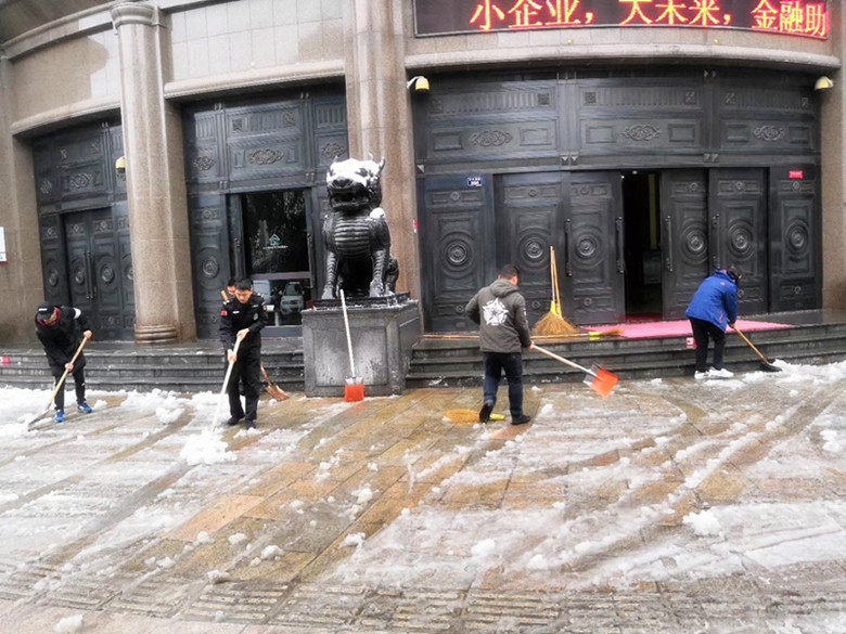 12月8日一场大雪,覆盖了整个杭城,催生了久违的杭城雪景,然而给我们出行带来了安全隐患。为确保出行安全,浙江卫邦保安公司第一时间启动应急预案,支部党员和广大一线保安员积极展开扫雪行动。 大家不畏严寒,说干就干,挥舞着铁锹、扫帚等劳动工具,忙碌的身影构成了一道靓丽的风景线。经过清扫,道路上积雪被清扫干净,保证了行人、车辆的安全出行。扫雪活动得到了许多路人和客户单位领导的点赞。