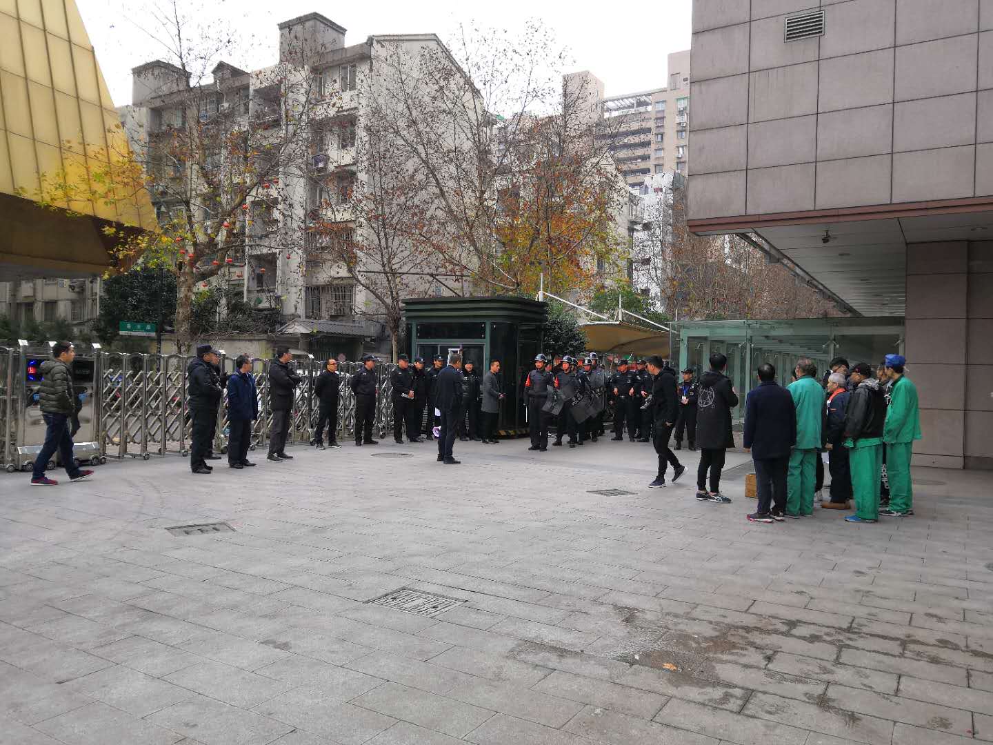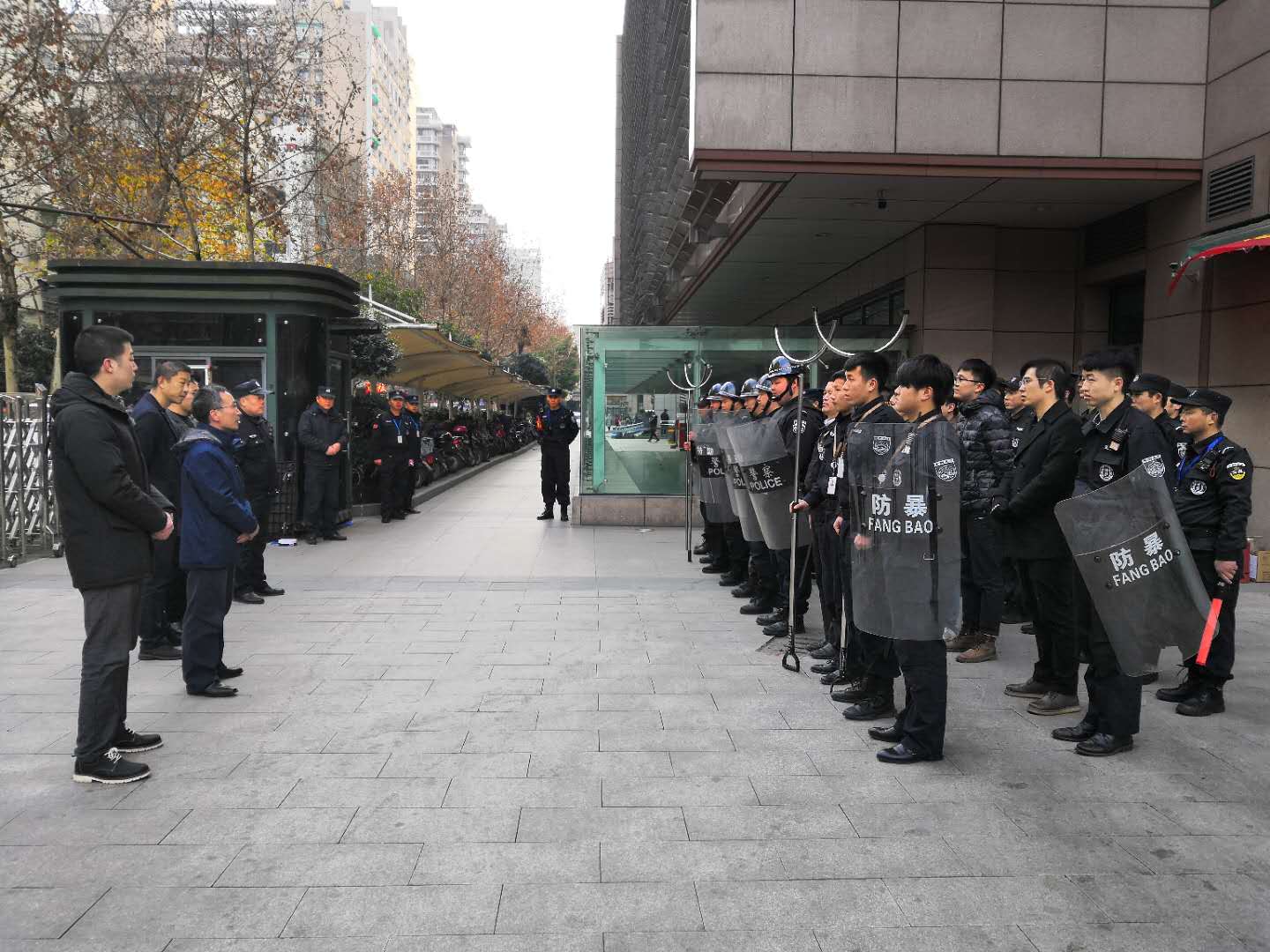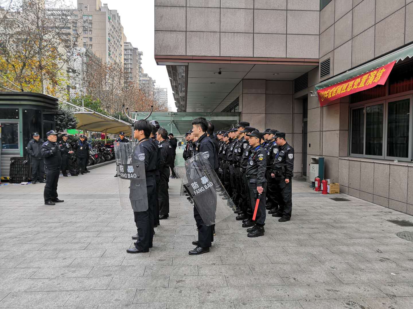 为进一步提升我司驻守医院的安保人员业务实操技能,增强医院保安队员的反恐应急处置工作的应急管理和应急响应程序,杭州上城区保安服务有限公司驻浙江大学医学院附属妇产科医院保安队于近期组织开展处理医疗纠纷演习,院领导、湖滨派出所领导、公司副总经理汪乾亲临现场,观摩指导。