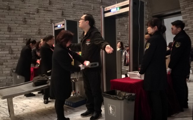受主方的邀请,杭州市安保服务集团有限公司承担了本场演唱会的安保任务,本次任务具有路途远、天气冷、时间紧、不确定因素多等特点,为确保本次安保工作的万无一失,公司董事长、总经理郑雪林冒着大风雪,在百忙之中也赶到现场检查指导安保工作,大型活动保障部负责人积极做好现场对接工作,提前一天安装调试安检设备,积极抽调优秀安保和安检人员提前二个小时赶到乌镇大剧院,尽心尽责做好队员的岗前教育,岗中巡查,岗后集队点评,把每一次安保任务都当作第一次任务来完成,确保安保队员的良好形象。