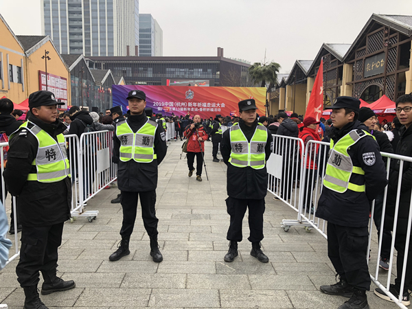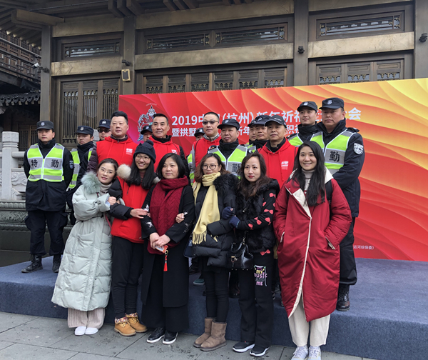 2019年1月1日,拱墅区第13届新年走运·香积祈福活动火热开锣,千余名市民群众集结运河天地广场。杭州拱墅保安服务公司也和往年一样,充满热情地投入到此次盛会当中,经过前期的踊跃报名最终挑选了十名员工参加,和大家一起通过在大运河畔健走的方式,迎接新年到来,也为新中国七十华诞送上第一声祝福。