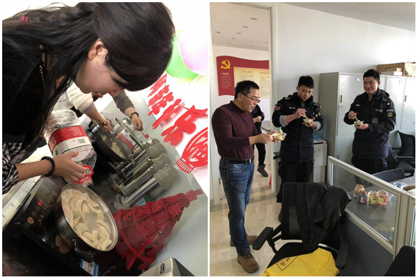 大家伙一边包着饺子,一边讲着趣事,有的同事还热心讲解了包饺子和擀皮的技术要点,并亲身示范,大家在参与中感受着包饺子的乐趣,由会议室改造的临时小厨房里,不断传来阵阵笑声,在场所有人都被这温暖的气氛所感染。