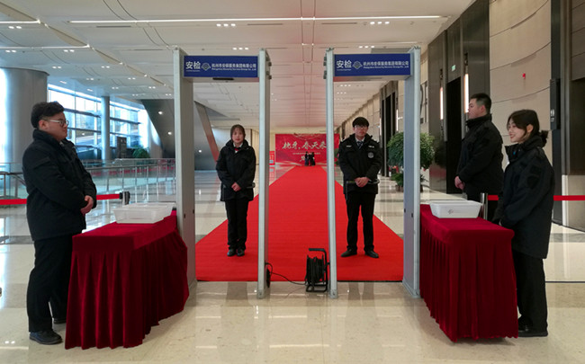 全体安保人员做到服从命令、听从指挥,文明执勤,热情服务、规范操作、逢包必检。积极配合主办方做好参会人员的引导工作,确保参会人员、物品进出安全有序。在安保工作中,共查检入场人员735人次,查收禁限带品50余件。在全体队员的齐心努力下,公司圆满完成2019杭州牙科医院集团年会盛典的安保任务。