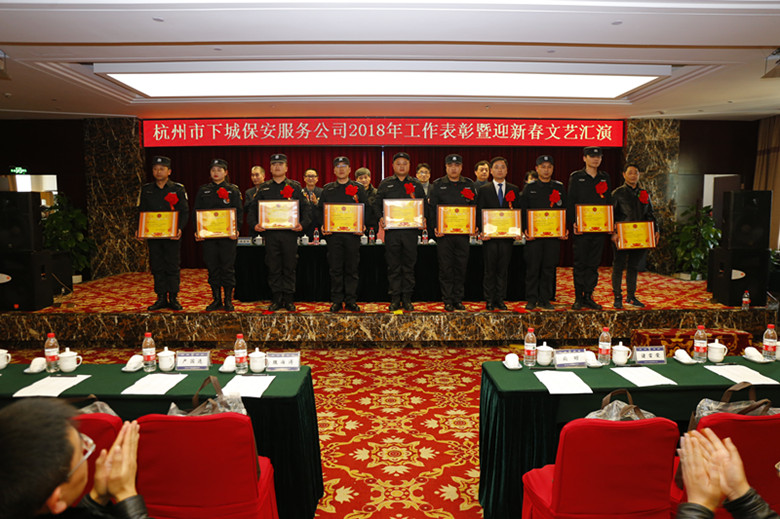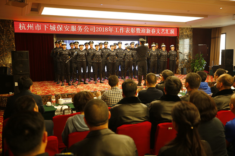1月22日下午,公司召开了2018年度表彰暨迎新春文艺汇演,受邀和客户代表到会指导,公司班子与公司干部员工和基层保安员代表共计200余人参加会议,会议由党支部书记陈谷安主持。表彰会结束后,一台由公司干部员工利用业余时间自编自导自演的文艺汇演正式拉开帷幕。