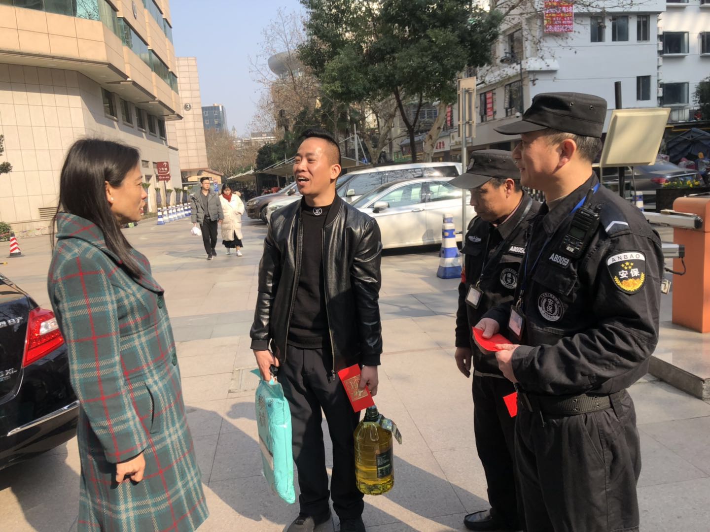 在新春佳节即将到来之际,带着深深的牵挂,公司总经理朱虹、副总经理汪乾及工会代表一行,前往一线各执勤点慰问困难员工,为他们送去了大米、食用油等慰问品,为他们送去殷切关怀和新春祝福。