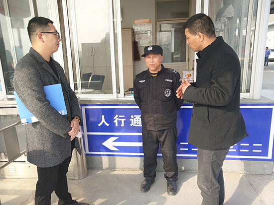为加强春运及春节假期期间安全生产工作,2019年1月30日下午,由公司安全分管领导带队,安全督察部陪同前往重点服务单位、重点岗点进行节前安全大检查,确保客户单位和保安员过一个欢乐、祥和的春节。