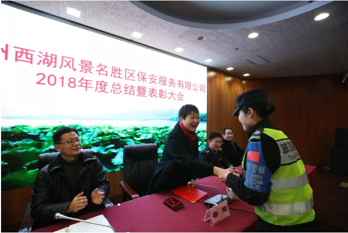 2019年1月31日下午,景区保安公司在杭州西湖博物馆召开了2018年度工作总结暨表彰大会。名胜区党委委员、景区公安党委书记、局长杨辉、景区资产经营集团公司党委书记、董事长郑钧、景区行政执法局党委委员、副局长麻剑辉、景区保安公司分管领导、全体班子成员、保安骨干、受表彰先进等200余人参加了会议。