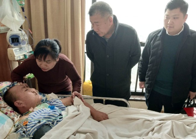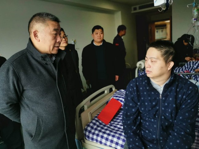 在探望过程中,郑总代表公司送上了春节祝福以及慰问金并仔细询问了队员们目前的病情,了解了队员的生活和后续治疗情况,鼓励他们要积极配合医院治疗,树立战胜病魔的信心,祝愿他们早日康复,争取早日重回工作岗位。患病队员和家属对公司领导的慰问和关心表示感谢,同时表示在公司领导关心和关怀下,一定安心养好病,走出困境。