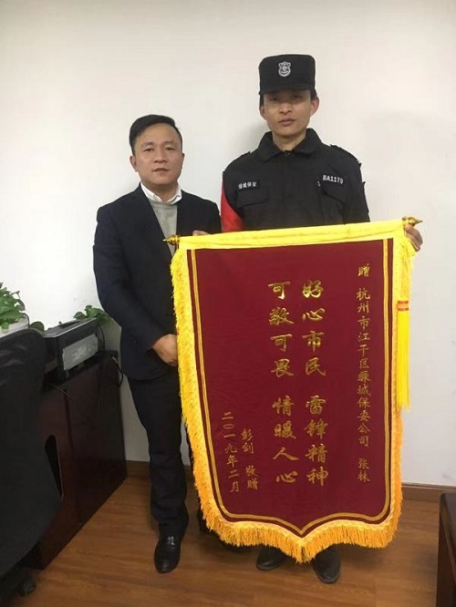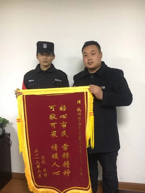 2019年3月5日,通过警方已得知小男孩已顺利回到父母身边,男孩父母为了表示对绿城保安的感谢特送来了一面旌旗,表示感谢。
