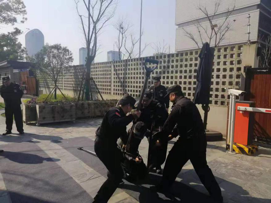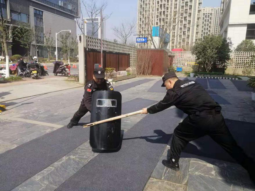 本次演练采用案例分析和室外情景模拟相结合的方式,对各类防暴装备器材的使用注意事项和适用范围,就盾牌、防暴棍、钢叉等器材的规范用法作了示范说明,并现场开展了单人进攻与防范、多人合围、盾棍叉联动等实战演习。消防培训主要围绕组织疏散、应急逃生、灭火器的使用三方面内容开展培训与演练。